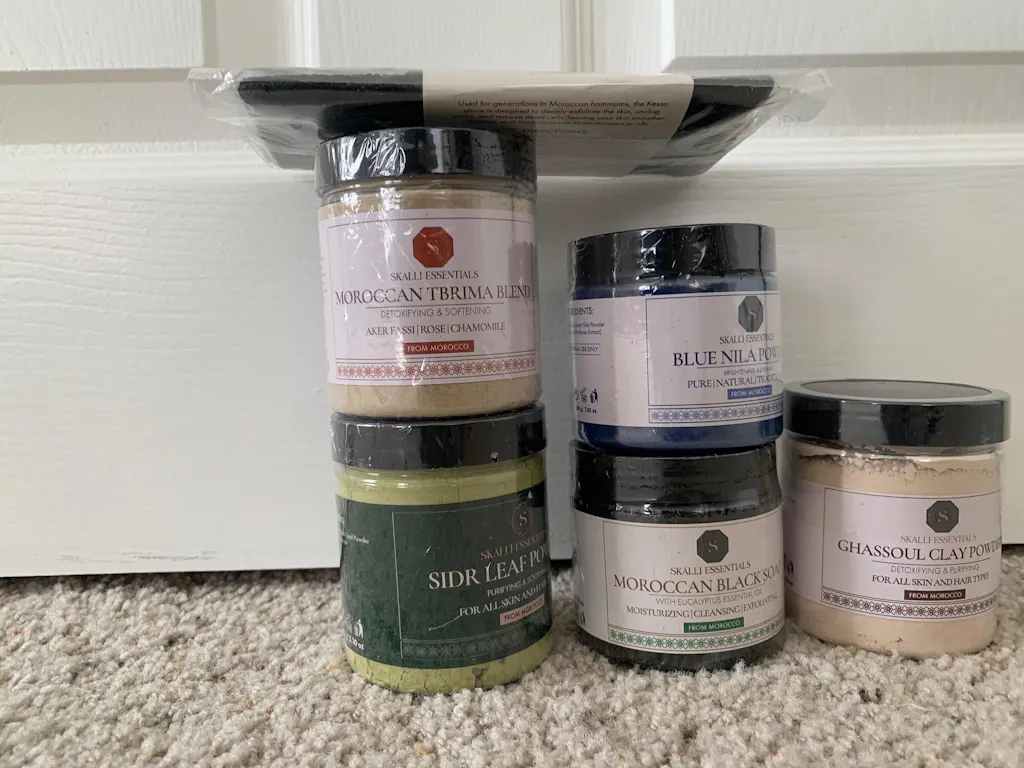 The hammam process is one that men and women in Morocco have been using for centuries. Moroccan Black Soap gently exfoliates the skin and brings dead skin cells to the surface of the skin. Then, the Kessa Mitt is used to physically remove the dead skin and leave you with soft, silky smooth skin.
